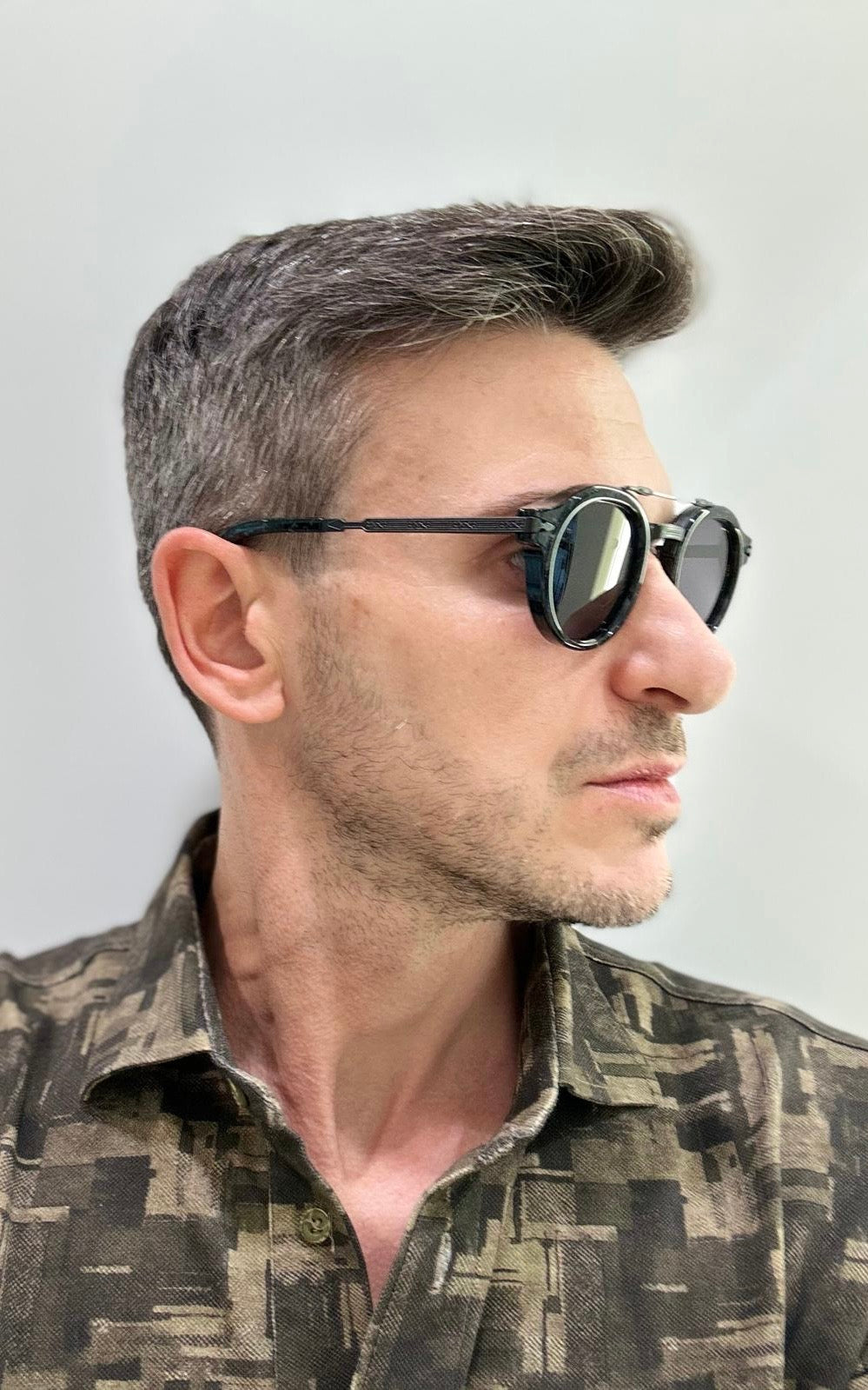 Il modello DELAGE incarna l’eleganza senza tempo dell’Art Déco, con linee fluide e dettagli raffinati che richiamano lo stile iconico degli anni ’50, reinterpretato con gusto per l’ambiente urbano moderno. La montatura in acetato massiccio assicura robustezza e comfort, mentre le asticelle in titanio conferiscono leggerezza e un tocco di sofisticata modernità.