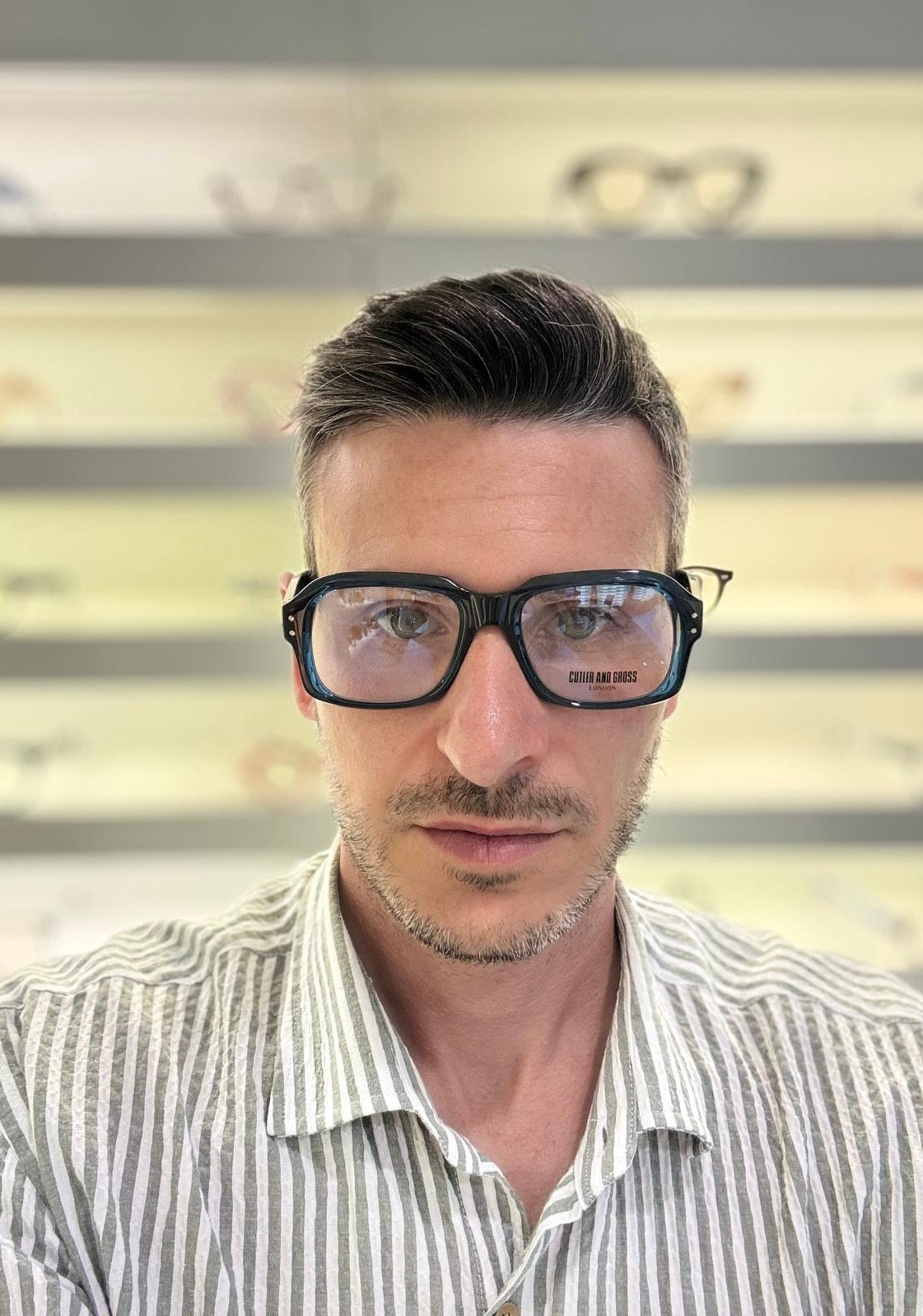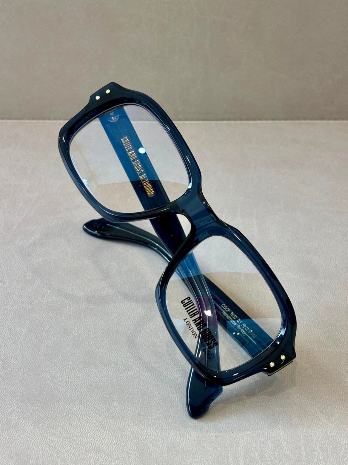 I perni “Compass Star”, presenti sia sul frontale che sulle aste, sottolineano l’identità del brand con un dettaglio distintivo e ricercato. Ogni esemplare è realizzato a mano in Italia, con oltre 265 ore di lavorazione artigianale nell’atelier Cutler and Gross.
