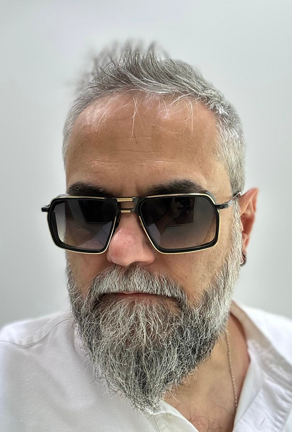 Un'interpretazione audace di uno stile iconico, il modello GT-R in BNG reimmagina l'estetica anni ’70 con dettagli tecnici e un’eleganza ispirata all’ingegneria ad alte prestazioni. Realizzato in beta titanio nero opaco con inserti in acetato da 11 mm lavorati con precisione, questo occhiale richiama il carattere deciso e raffinato di una classica GT stradale.