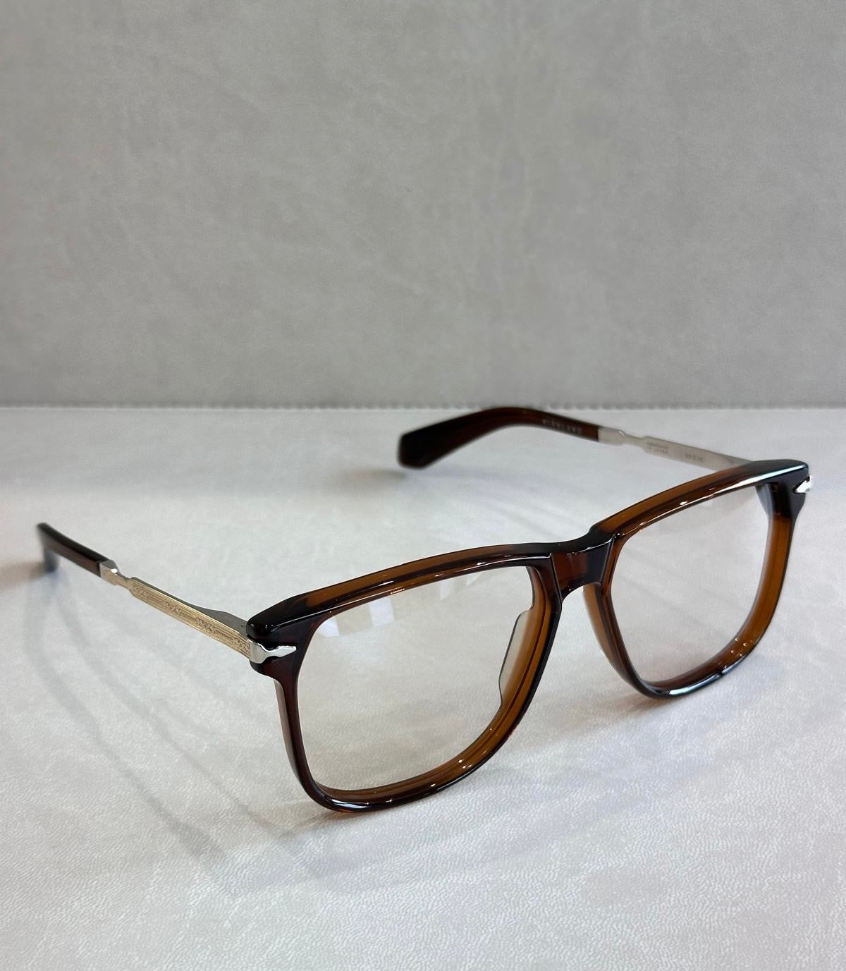 Il design “navigator” audace si fonde con un comfort superiore, grazie al robusto frontale in acetato marrone lucidato e alle leggere aste in titanio, incise e impreziosite da dettagli esclusivi come il fregio a “punta di freccia” in argento, fissato con cura a tensione. Ogni elemento racconta una storia di eleganza senza tempo e carattere deciso, ideale per chi desidera un accessorio distintivo e sofisticato.